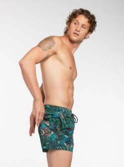 A fun blue tone paisley print in a classic and flattering silhouette, semi-wide romper with side drawstrings