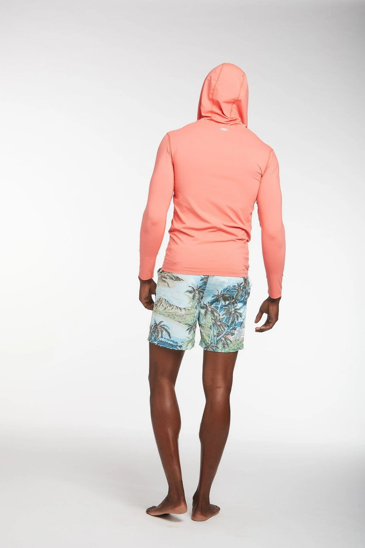 Turn heads in our Cove Rash guard in Coral. Perfect for the active Le Club man or for simply lounging on the beach.