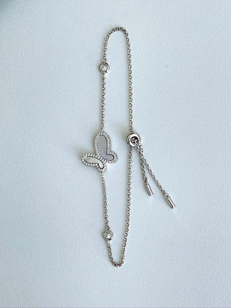Simply Gorgeous! Silver butterfly bracelet with mother of pearl wings, encrusted with CZ.